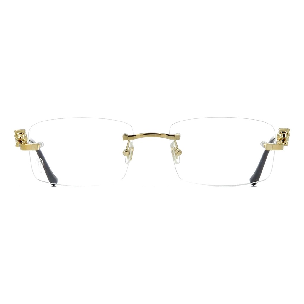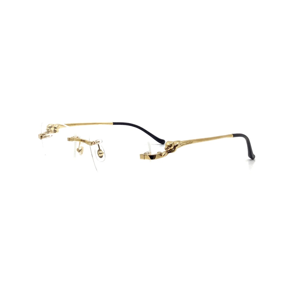 The CT0281O 001 features a classic gold rimless rectangular shape with dynamic panther head and body designs on the metal temples. The temple tips provide comfort and draw inspiration from the panthers tail movement.
