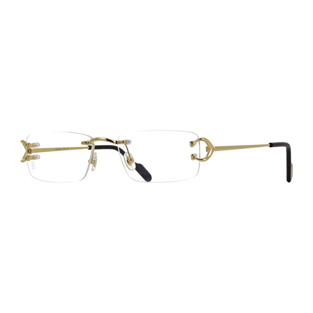 Cartier Core Range Optical Collection model CT0344O 002 featuring smooth gold finish frame and gold temple.