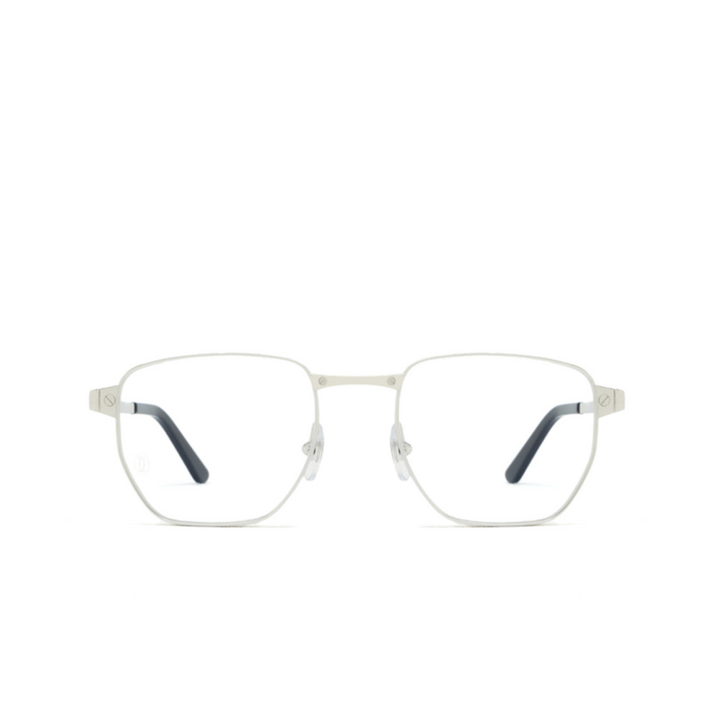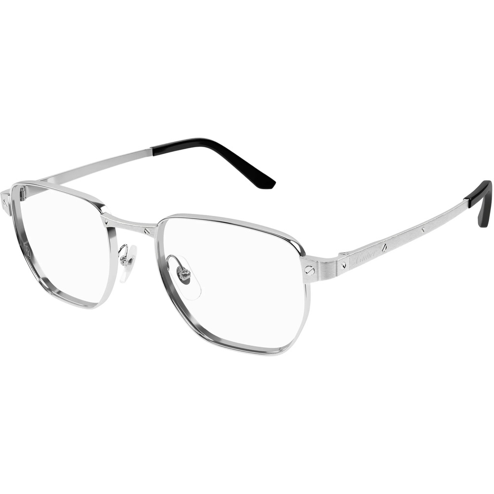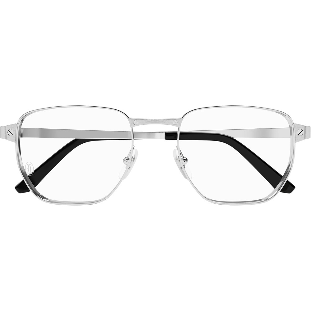 A modern soft square shape in a fullrim design featuring a metal hinge with faceted detailing inspired by the Santos watch strap The recognizable Santos temples have signature screw accents with acetate tips for comfort Available in gold or platinum finishes with an engraved Cartier logo
