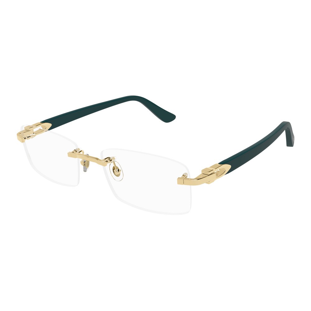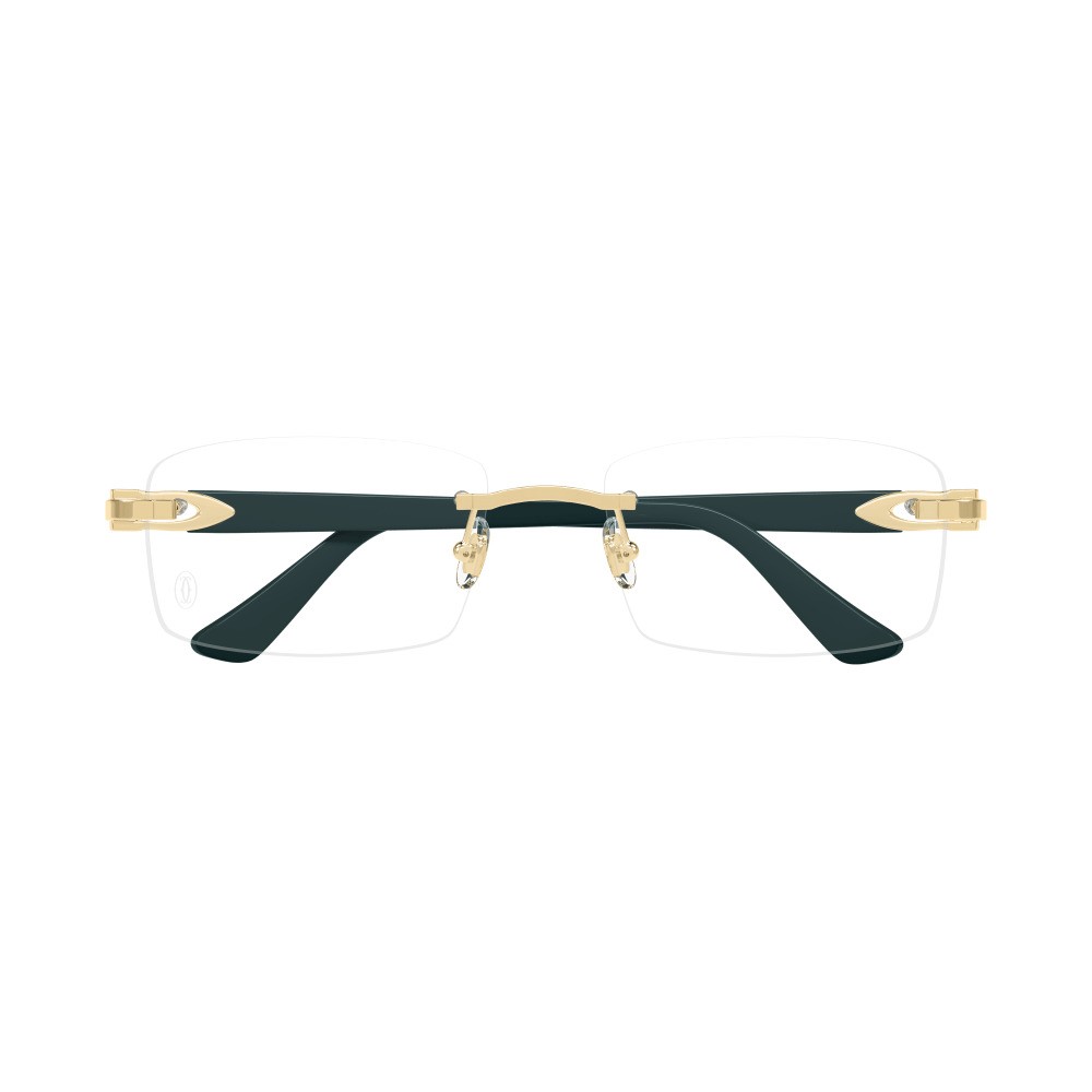 Rectangular rimless metal frame with a minimalist aesthetic Incorporates subtle C Décor detailing for a refined appearance