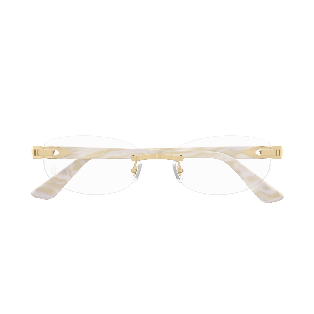 Oval rimless metal frame offering a lightweight and elegant design Showcases intricate metalwork reflecting Cartier's craftsmanship