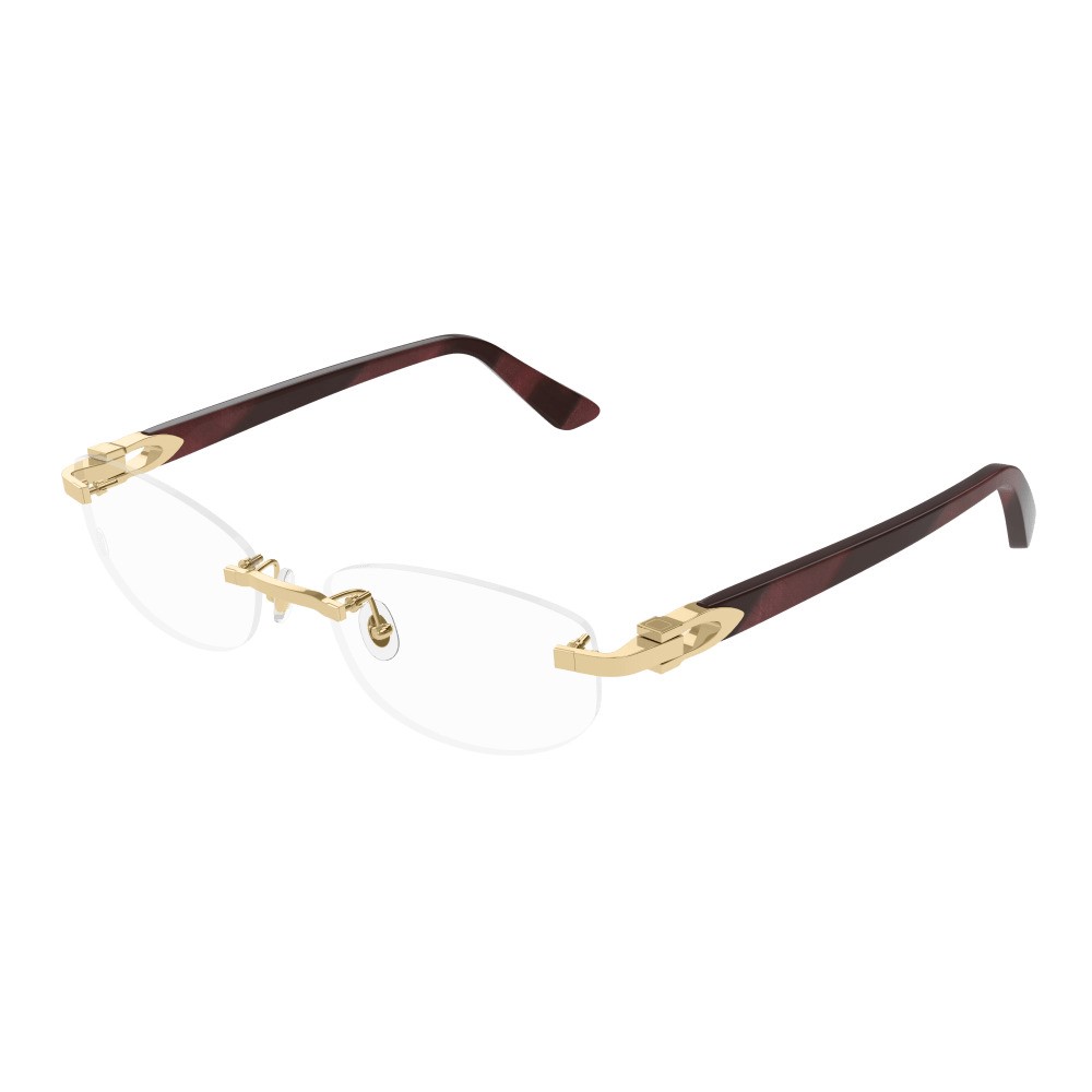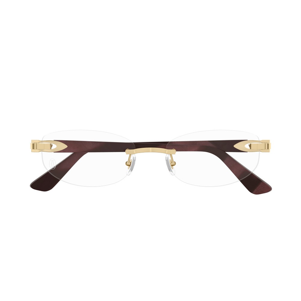 Oval rimless metal frame offering a lightweight and elegant design Showcases intricate metalwork reflecting Cartier's craftsmanship