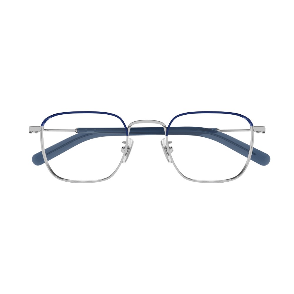 Sleek rectangular metal frame with adjustable nose pads and signature snowcap details
