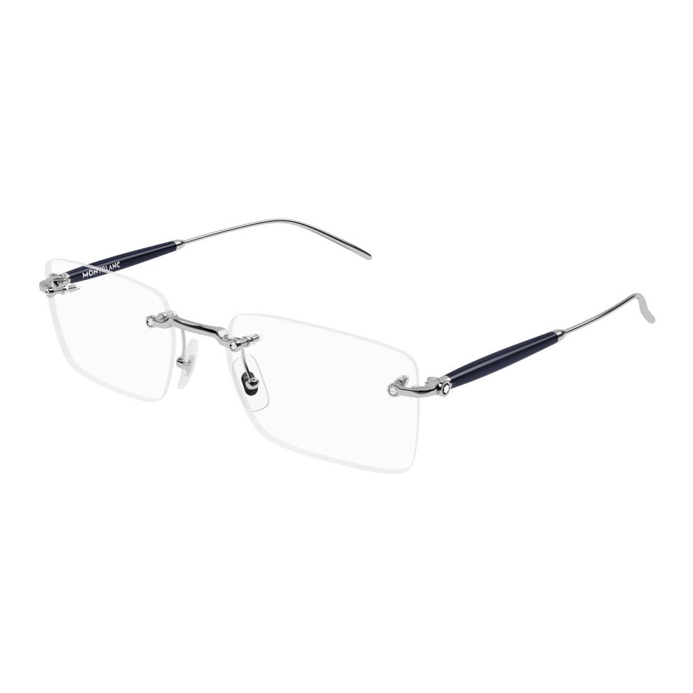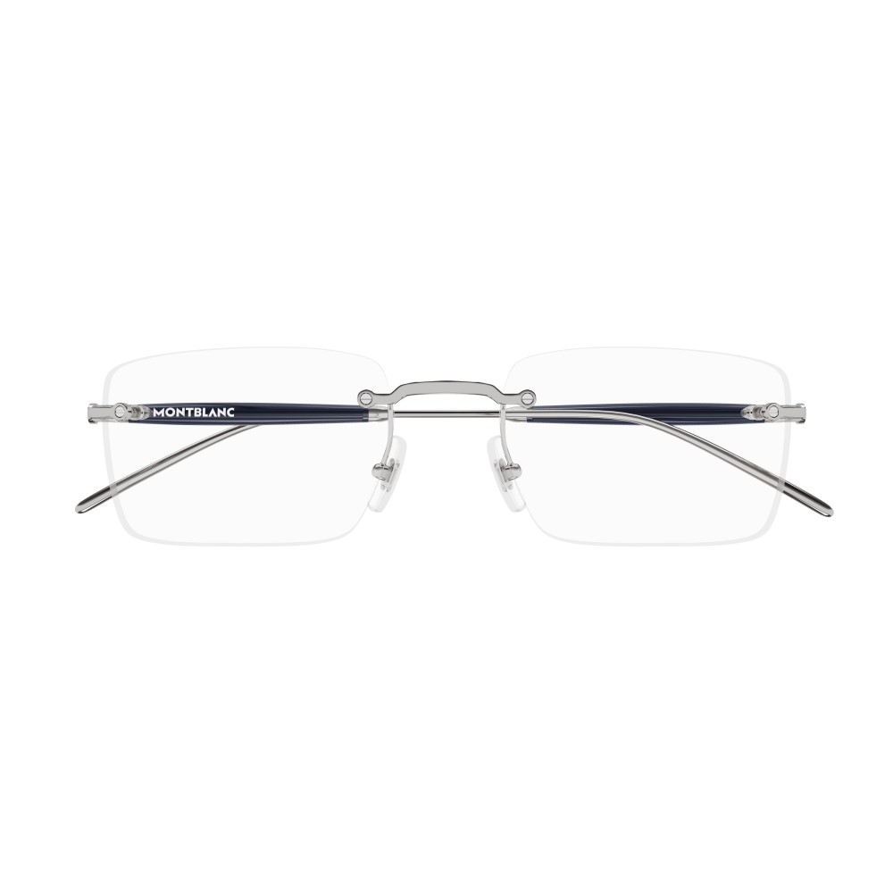 Lightweight rimless rectangle with metal bridge temples and silicone pads for an understated business look