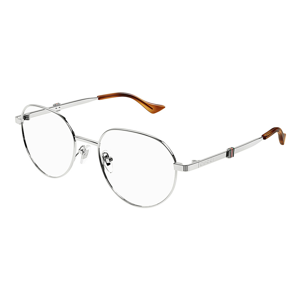 Gucci GG1496O eyeglasses blend classic elegance with modern design featuring a rounded metal frame and distinctive Gucci branding on the temples With a comfortable medium fit and acetate temple tips for added comfort