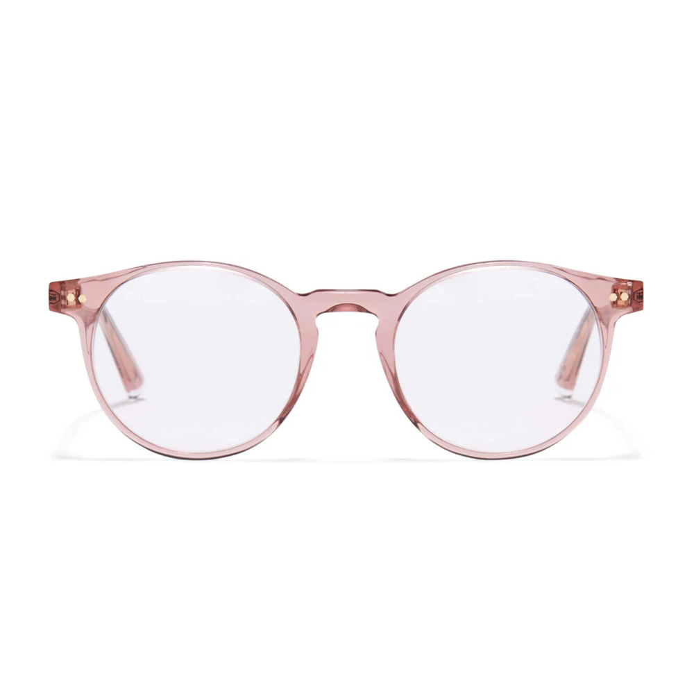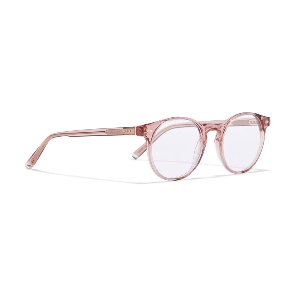 TM013C3 is a stylish pair of eyeglasses featuring a pink crystal acetate frame complemented by light gold accents Designed with a round shape these frames offer a lens width of 48mm a bridge size of 20mm and temple arms measuring 145mm This model is part of Taylor Morriss commitment to accessible luxury eyewear combining contemporary design with quality materials