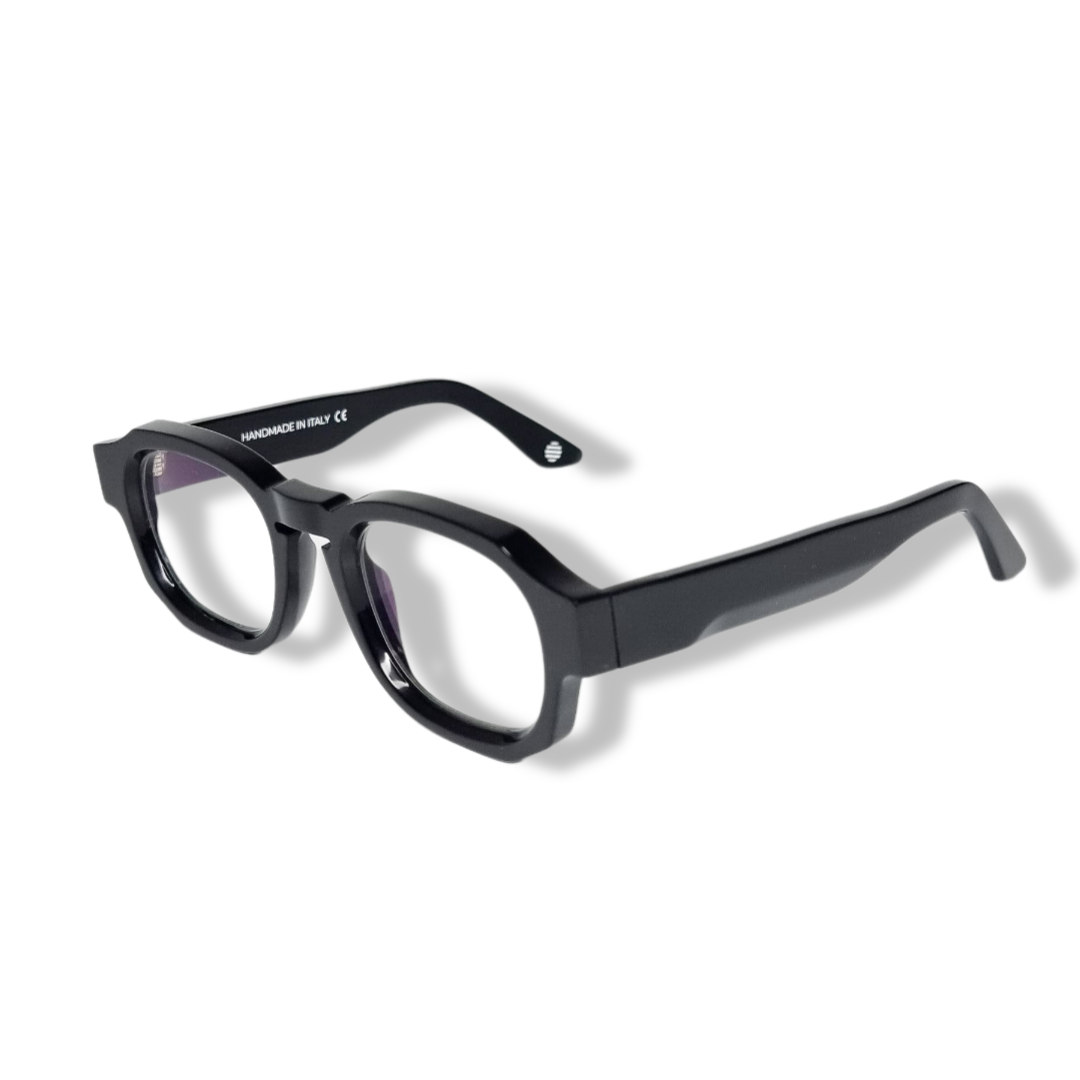The Wright features black acetate eyeglasses with clear lenses embody Italian elegance with a handcrafted frame for a bespoke fit and unparalleled style perfect for any look.